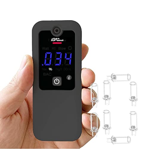 iBACheck Digital uppladdningsbar alkoholtestare promillester med avtagbart batteri och låg strömförbrukning. Promillemätare alkoholtest med 8 munstycken och LED-display