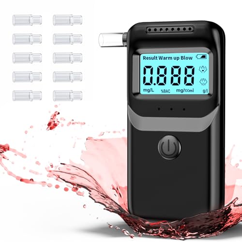 Etylotest, Elektronisk Tylotest Homologu Alkoholtest AlkomäTare Med Hög Precision och Digital Lcd-FäRgdisplay med 10 Munstycken föR HushåLl och Professionell AnväNdning - MöRk Svart