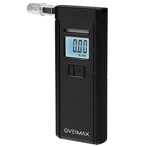 OVERMAX AD-05 Professionell digital alkomätare, Elektrokemisk sensor, används i polisens, Kalibrering, Hög mätnoggrannhet upp till 0,07‰, Svarstid 5s, Röd varningsindikator och ljud, LCD, 3 munstycken