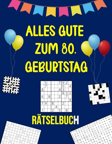 Alles Gute zum 80. Geburtstag - Rätselbuch: Geburtstag Geschenkbücher für Großeltern mit 132 Rätseln (Kreuzworträtsel, Sudoku, Wortsuchrätsel, Labyrinth, Straights & BINOXXO)