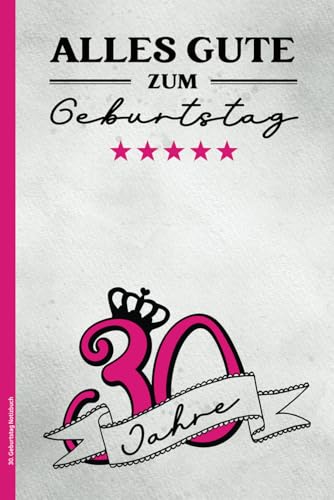 30. Geburtstag Notizbuch: Alles Gute zum Geburtstag Buch A5 liniert schönes Geburtstagsgeschenk für Frauen praktisches Geschenk Schreibheft für Notizen als Tagebuch mit Krone und Herz zum 30 Geb