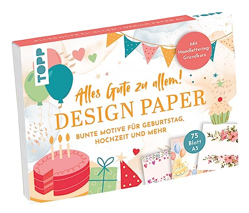 Design Paper A5: Alles Gute zu allem. Mit Handlettering-Grundkurs: 75 Motivpapiere (DIN A5, 220 g/m²), in 25 Designs, 16 Seiten Handlettering-Grundkurs, Softcover