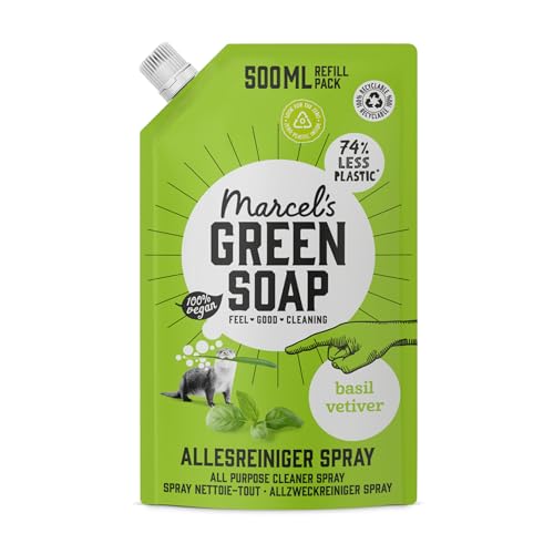 Marcel's Green Soap – allsidig spraypåfyllning basilika och vetiver – rengöringsspray – sparar 76% av plast – miljövänlig – 100% vegan – 97% biologiskt nedbrytbar – 500 ml