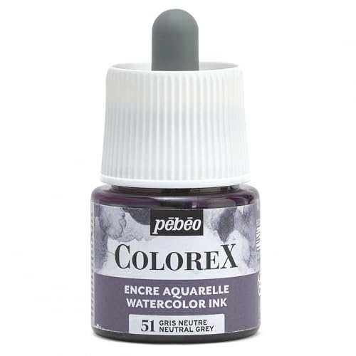 Pébéo - Colorex 45 ML Neutral Grey Ink - Colorex Pébéo akvarellbläck - grå sammetsavgivning bläck - allsidig flerverktygsritningsbläck - 45 ml - neutral grå