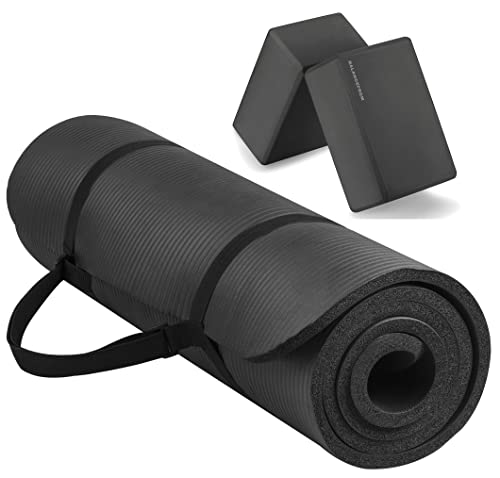 BalanceFrom Allsidig 1/2 tum extra tjock hög densitet anti-rivning träning yogamatta med bärrem och yogablock