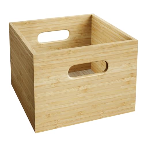 KD Essentials – Förvaringslåda av bambu, stapelbar – stor (praktisk, elegant, allsidig bambulåda för kontor, vardagsrum och kök, certifierat hållbart trä, naturfärgad)