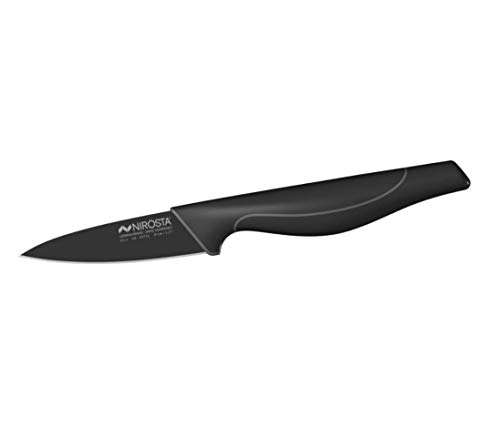 Nirosta kökskniv tandad våg, allsidig kniv av rostfritt stål, mjukt touch-handtag, handskuren vågslipa-blad med svart non-stick beläggning, (bladets längd: ca 11 cm)