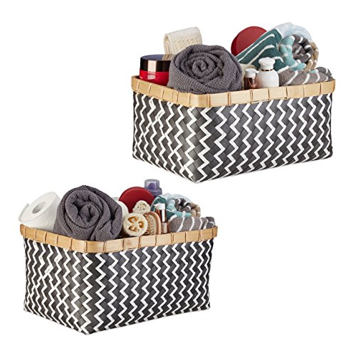 Relaxdays förvaringskorg 2-pack, fyrkantig, allsidig, bambumix, vattentät, naturlook, flätad, svartvit