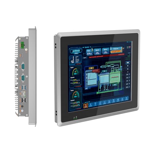 SunKol 12,1 tum fläktlös industripanel-dator, allt-i-ett industriell inbyggd panel-dator med kapacitiv pekskärm, 2xUSB2.0,2xUSB3.0, HDMI, 2xRS232, LAN (J6412, 4GB RAM 128GB SSD)