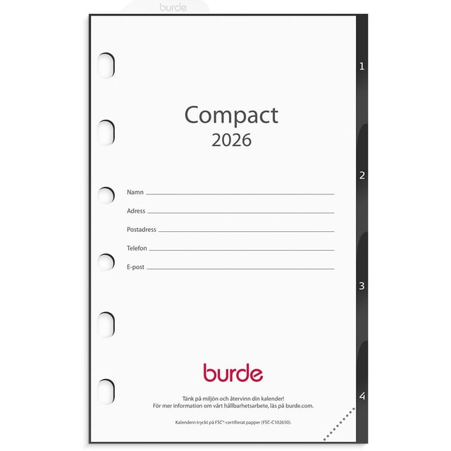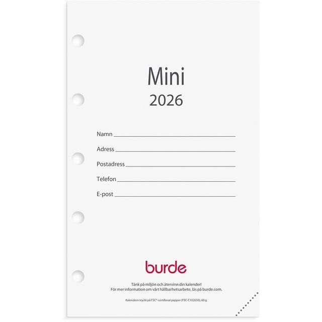 Almanacka Burde 1190 Liten Veckokalender Refill 2026