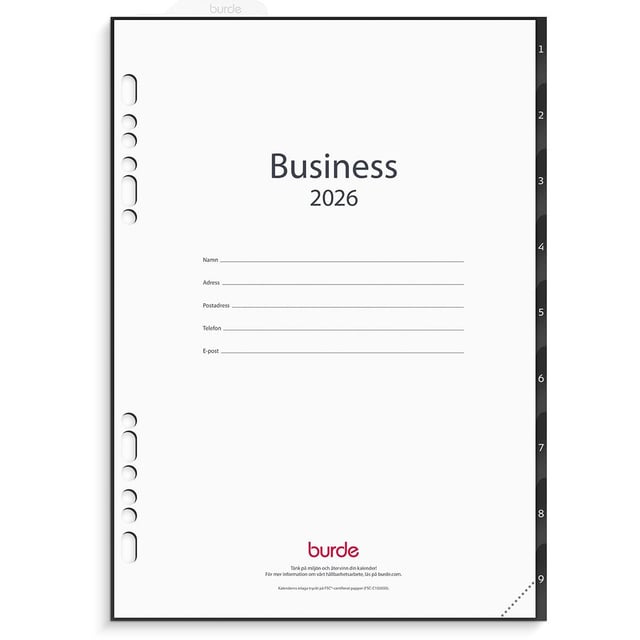 Almanacka Burde 5940 Business Skinn 2026 Svart A5