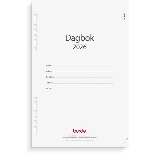 Almanacka Burde 1080 Dagbokskalender Refill 2026