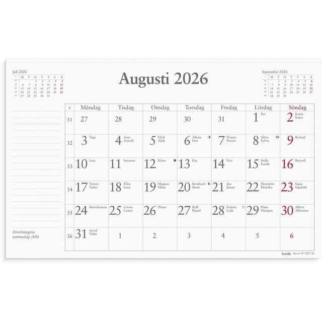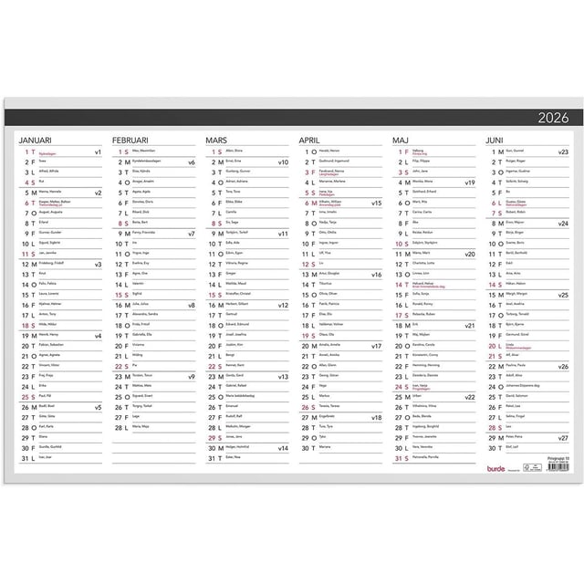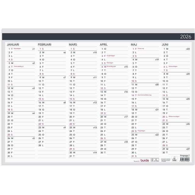 Almanacka Burde 1480 Veckoalmanackan 2026