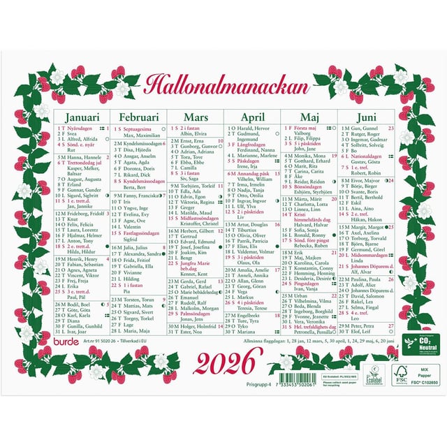 Almanacka Burde 5010 Stora Hallonalmanackan 2026