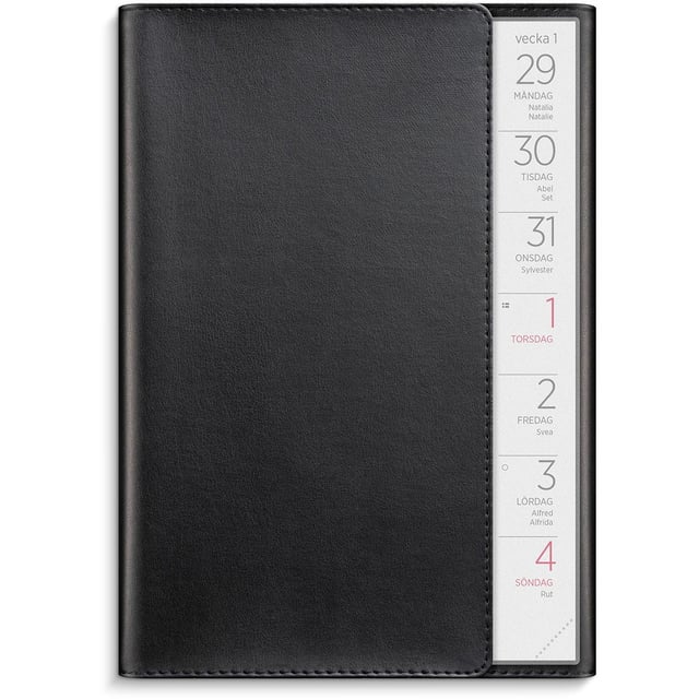 Almanacka Burde 1414 Veckokalendern Konstläder 2026 Svart
