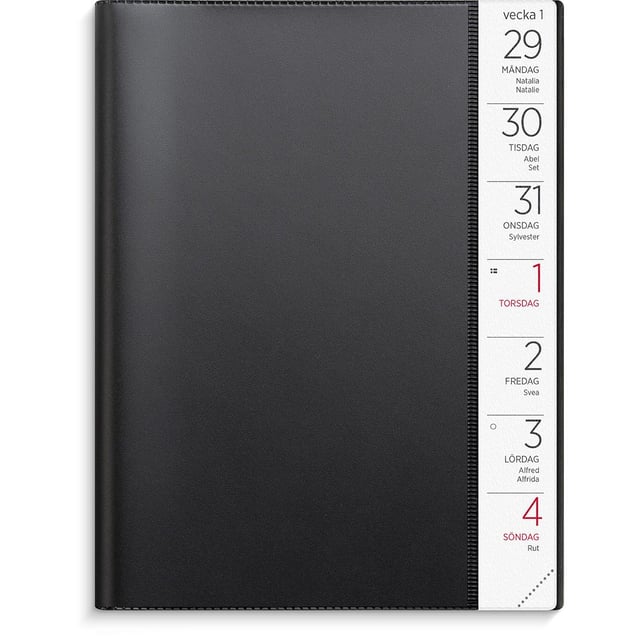 Almanacka Burde 1106 Stor Veckokalender Plast 2026 Svart