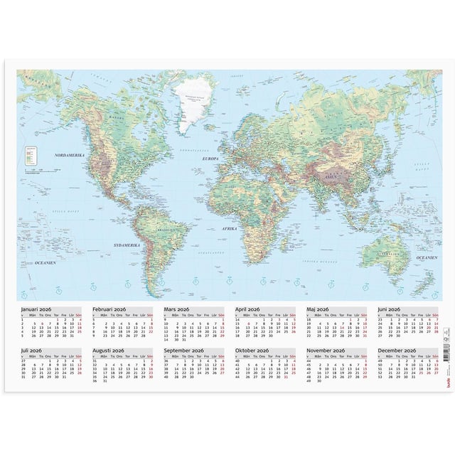 Almanacka Burde 5087 Väggblad Världskarta 2026