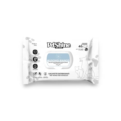 PetShine Hygienservetter för hund och katt, vit mossa och Aloe Vera, 40 st, skonsam rengöring, alkoholfri, naturlig doft, lämplig för känslig hud