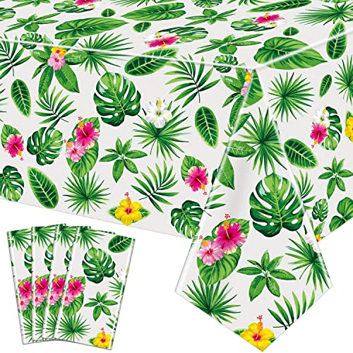 4 paket bordsduk Luau Hawaii duk tropisk palmblad rektangulär engångsplast bordsduk Hawaii födelsedag bordsduk aloha sommar strand pool barn cocktail party tillbehör