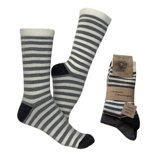 Alpaka Ullstrumpor Randig & Mörkgrå Slätstickade 2-pack | Strl. 35/38