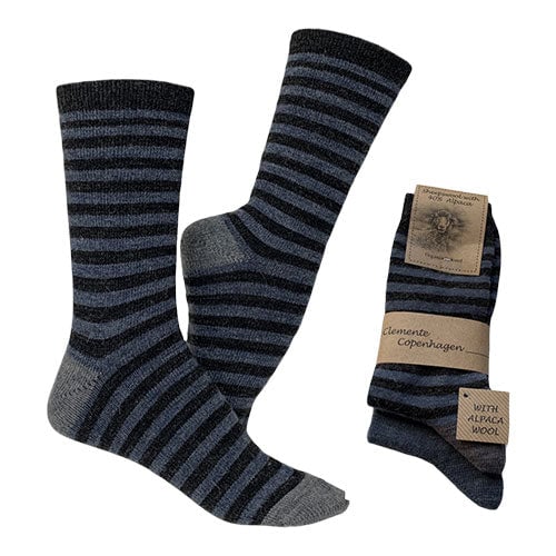 Alpaka Ullstrumpor Mörkgrå/blåstribet & Blå 2-pack Slätstickade | Strl. 43/46