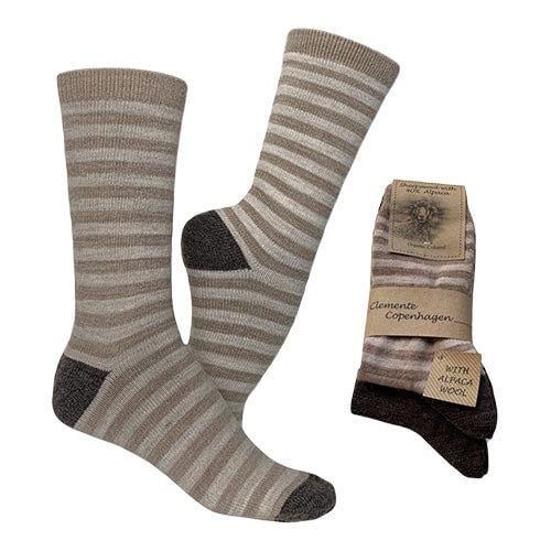 Alpaka Ullstrumpor Brun & Beige Tjocka 2-pack | Strl. 43/46