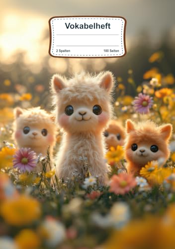 Vokabelheft Alpaka: 2 Spalten, Liniert mit 100 Seiten in DIN A5 für jeden Sprachunterricht in Schule & Freizeit mit Niedlichem Alpaka Motiv