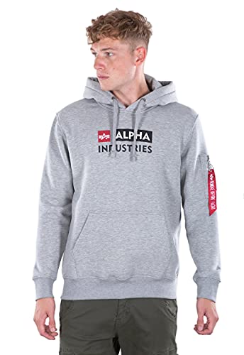 ALPHA INDUSTRIES Herr Alpha Block-logo hoodie, Grå ljung, XXL