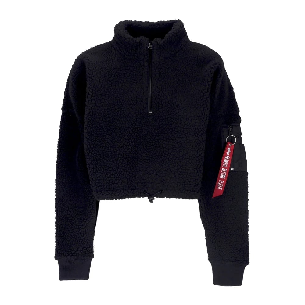 Alpha Industries, Sweatshirts & Hoodies , Dam, M, Polyester, Svart Cropped Sherpa Turtleneck Sweatshirt