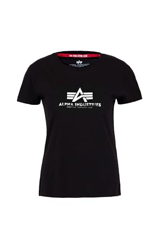 ALPHA INDUSTRIES Dam New Basic T Wmn Foil Print kortärmad tröja, Svart/metallsilver, XS