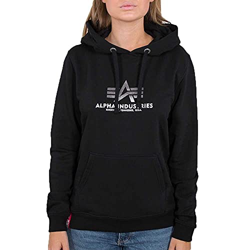 Alpha Industries New Basic Hoody -Huvtröja med folietryck-Dam Black/Metalsilver