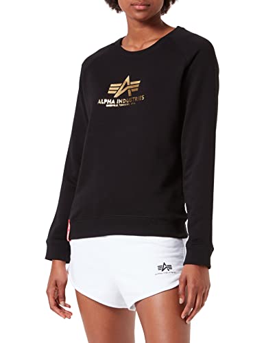 Alpha Industries New Basic-Sweatshirt med folietryck-Dam Black/Yellow Gold