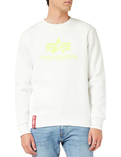 ALPHA INDUSTRIES Basic tröja för män neon tryck huvtröja, Vit/neongul, XL