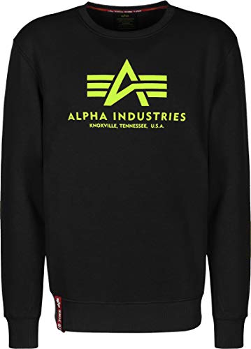 ALPHA INDUSTRIES Basic Tröja för män, Svart (Svart/Neon Yellow - 478), 3XL