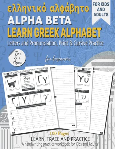 Alpha Beta Learn Greek Alphabet Letters: Learn to read and write the letters of the Greek Alphabet, A handwriting practice workbook for kids and adults, Cursive and Print type for beginners