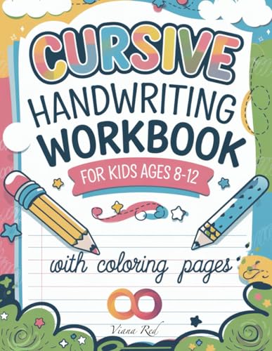 Cursive Handwriting Workbook for Kids Ages 8-12 with Coloring Pages: Learn Hand Lettering with Directional Arrows, Practice Book for Tracing Alphabet Letters and Small Words