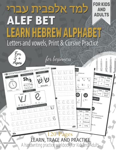 Alef Bet Learn Hebrew Alphabet Letters: Learn to read and write the letters of the Jewish alphabet, A handwriting practice workbook for kids and adults, Cursive and Print type for beginners