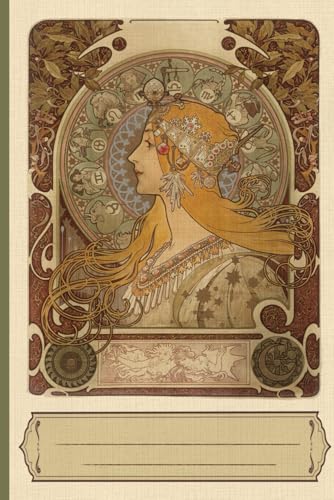 Zodiac Woman Illustration Ruled Journal: Vintage Alphonse Maria Mucha Woman Illustration foor School, College, Journaling 6"x9" Cream Pages