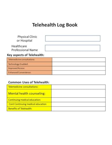 Telehealth Log Book: also known as telemedicine, uses technology to deliver healthcare services remotely.