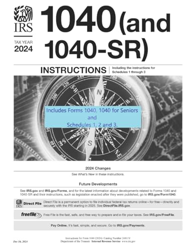 Year 2024 1040 (and 1040-SR) Instructions and Forms for filing 1040, 1040 for Seniors and schedules 1, 2 and 3: Also known as Publication 17 with filing forms