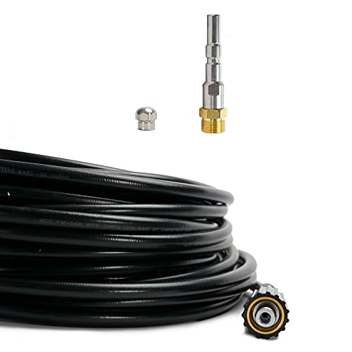 Rörrengöringsslang set 3 delar för Nilfisk ALTO professionell högtryckstvätt KW och andra – anslutning M22 x 1,5 AG för KEW, WAP, Alto, Nilfisk & Kränzle + rörrengöringsmunstycke (35 meter)