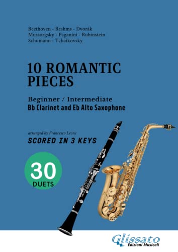 Clarinet and Alto Saxophone easy duets book- 10 Romantic Pieces (scored in 3 keys): beginner / intermediate
