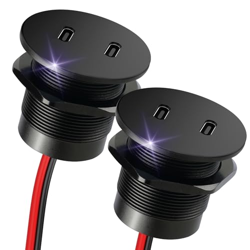 Obeaming 12V USB-Uttag Husbil, Dual Portar USB C PD3.0 20W Snabb laddning Aluminium för Marin Båt Buss Lastbil RV Marine ATV Husvagn 2 Pack
