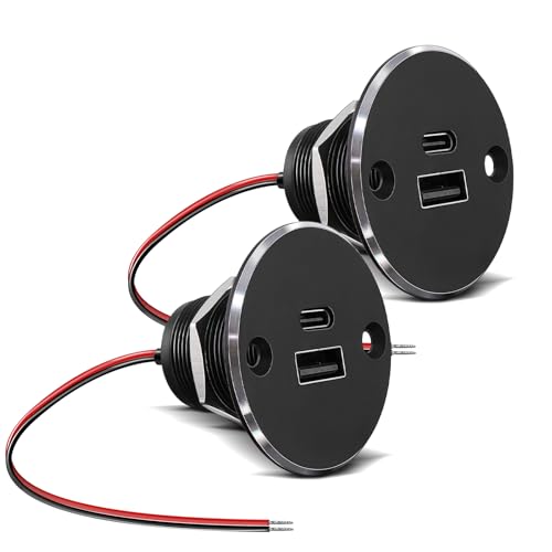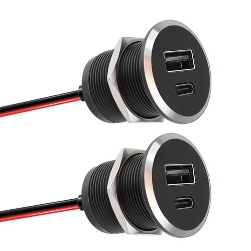 Obeaming Dual 12V USB-Uttag Husbil, Typ A + Typ C-portar PD3.0 & QC3.0 Snabb laddning Aluminium för Marin Båt Buss Lastbil RV Marine ATV Husvagn (Större 2)