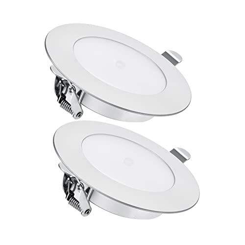 acegoo 2 x 12V DC LED infälld lampa 3W spotlight platt hål 62–70 mm 285lm taklampa för husbil båt husvagn bil yacht möbler, helt i aluminium (Satin Silver 3000K)