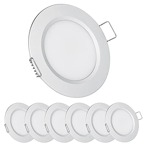 acegoo 6 x 12V DC LED infälld lampa 2.5W infälld spotlight platt spotlight hål 58–64 mm taklampa för husbil båt husvagn bil yachtmöbler, helt i aluminium, 5000K (silver)