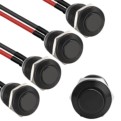 APIELE 5 stycken 12 mm tillfällig tryckbrytare 12 V, aluminium utskjutande vattentät tillfällig tryckknappsbrytare med förkopplad kontakt, bil RV lastbil båt på/av-knapp strömbrytare