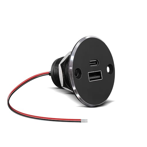 Obeaming 12V USB-Uttag Husbil, Dual Portar USB C PD3.0 20W Snabb laddning Aluminium för Marin Båt Buss Lastbil RV Marine ATV Husvagn 1 Pack