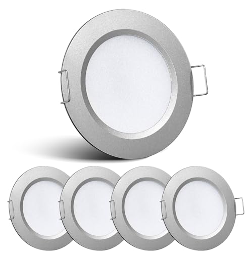 acegoo 4 x 12V DC LED infälld lampa 2.5W infälld spotlight platt spotlight hål 57–64 mm taklampa för husbil båt husvagn bil yachtmöbler, helt i aluminium, 5000K (silver)