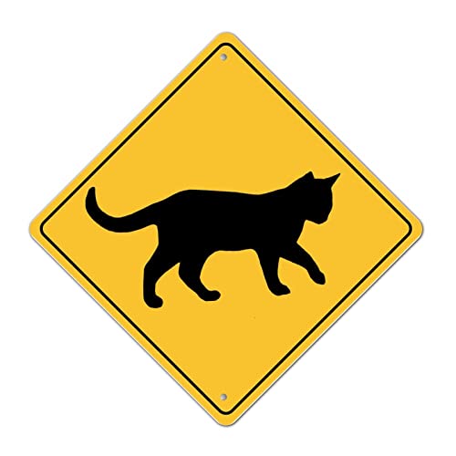 'Caution Cat Crossing Xing' skylt rolig metallskylt retro aluminium vägskylt långsam katt korsande zon varningsskylt diamantform metallskylt för gräsmatta bondgård dekor